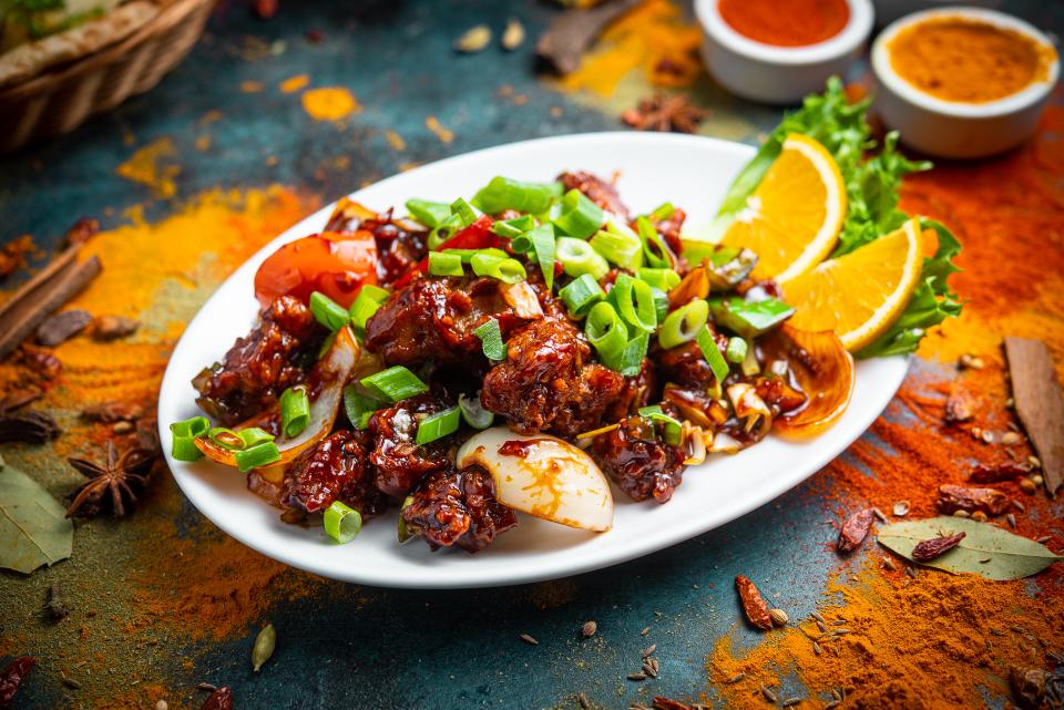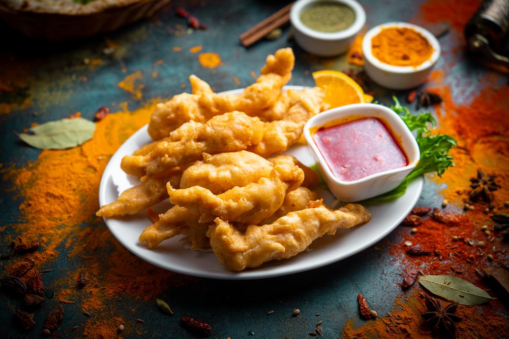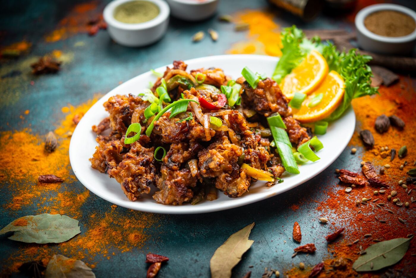 King prawns cooked with onion, capsicum and mushroom in crushed black pepper sauce