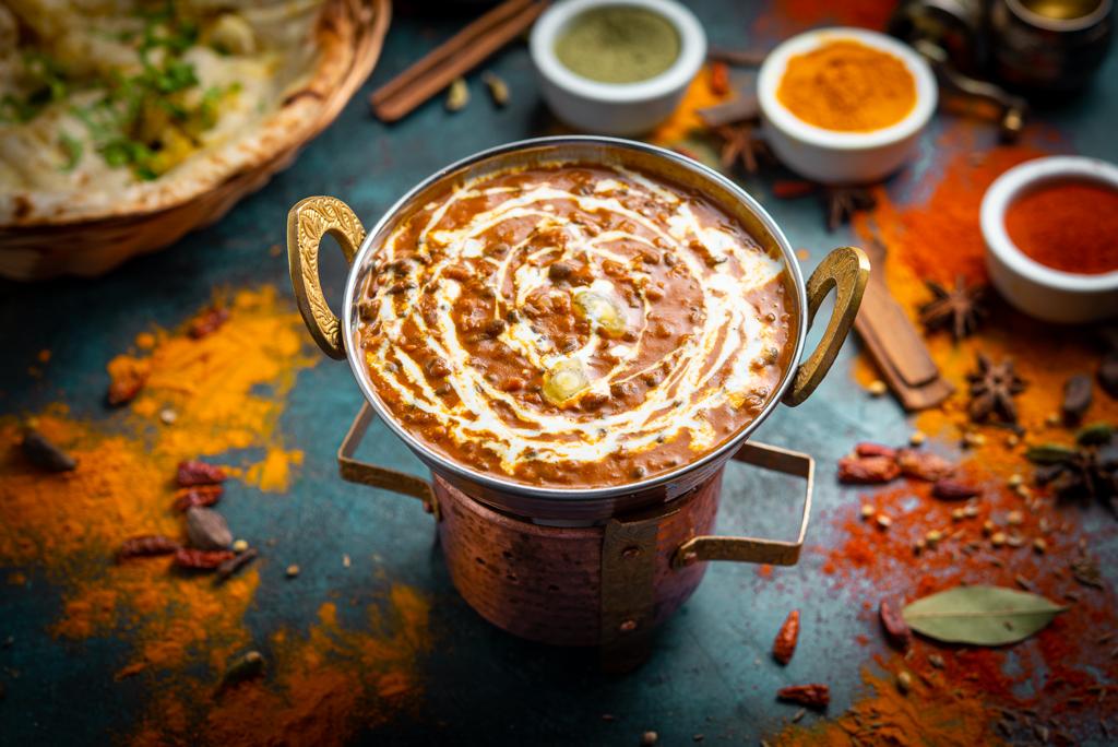 Traditional Indian vegetarian dishes – Lentils or black lentils or chickpeas in Indian curry sauce