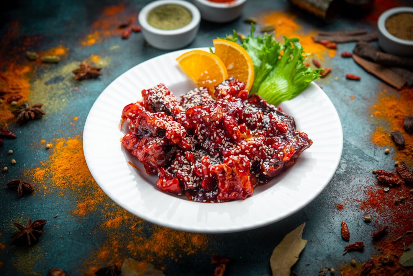 Deep fried egg plants cooked with dry red chilli in honey sauce
