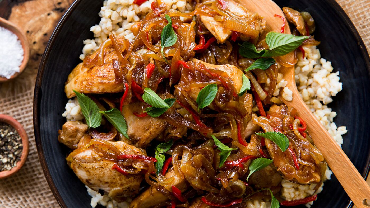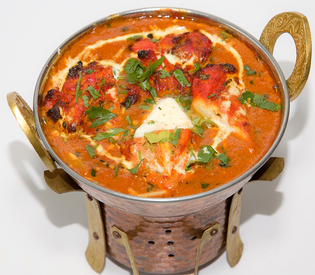Маринованная и обжаренная в тандыре курица без костей, запеченная в соусе масала с пряностями.