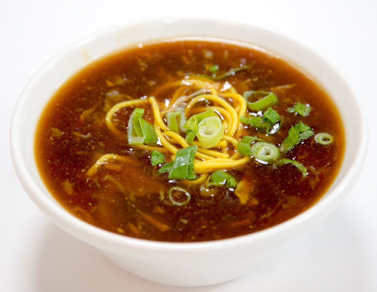 Густой острый суп с лапшой и разными видами мяса.